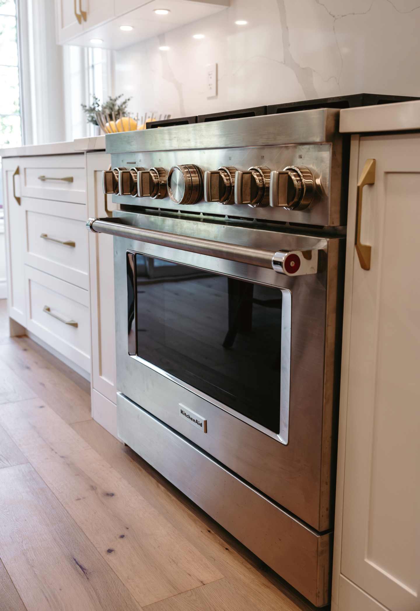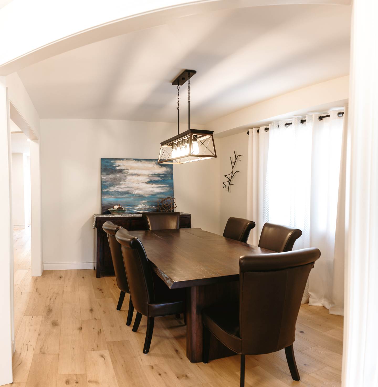 The completed renovation delivers a modern, open main floor that feels spacious yet intentional. Potlights were installed throughout the ceiling to enhance lighting control and highlight key areas without clutter. Every detail, from the engineered hardwood flooring to the concealed mechanical elements, was carefully considered to maintain a clean and polished look.