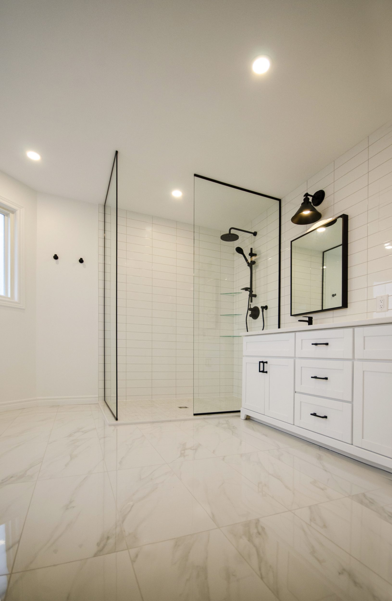 ← Traditional Ensuite in White and Gold.